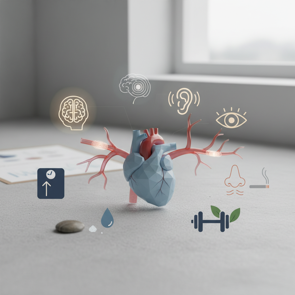 - Debelost: Višja telesna teža dodatno obremenjuje srce in krvne žile.