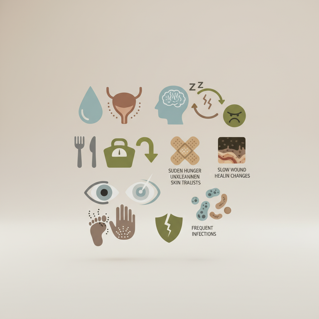 Eden najbolj klasičnih, a pogosto ignoriranih znakov, je kombinacija prekomerne žeje (polidipsija) in pogostega uriniranja (poliurija). Mnogi ljudje to pripisujejo zgolj temu, da so pač spili več vode ali da se starajo, vendar je mehanizem v ozadju precej bolj specifičen.